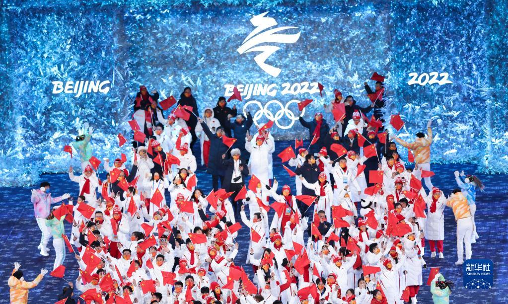 2022年2月20日晚,北京第二十四屆冬季奧林匹克運動會閉幕式在國家體育場舉行。這是中國代表團(tuán)成員入場。新華社記者 蘭紅光 攝
