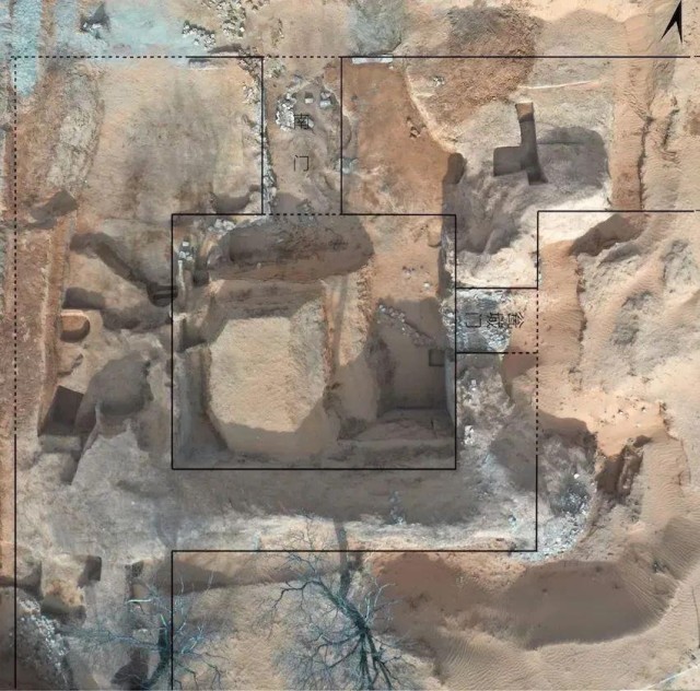 中心樓原本為一座高臺樓閣建筑,位于清平堡的中心位置,現(xiàn)僅存臺體部分,臺體下設(shè)四出券洞,連接堡內(nèi)四條主干街道。中心樓本身及其在城址中的建筑布局,最早可追溯到漢代的市場,反映出營堡的商業(yè)功能屬性。南門位于清平堡南城墻中部,與中心樓南側(cè)券洞正對,門外設(shè)甕城,具有軍事防御屬性。