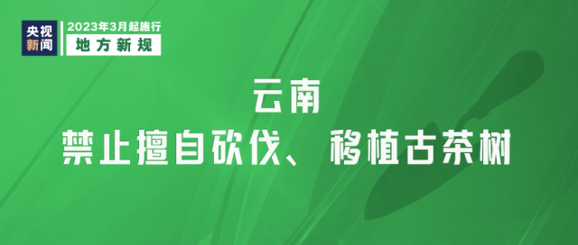 《云南省古茶樹保護條例》3月1日起實施,加強對樹齡在100年以上野生茶樹和栽培型茶樹進行保護。《條例》禁止擅自砍伐、移植古茶樹;在古茶樹保護范圍內使用危害古茶樹的生長調節(jié)劑、化學除草劑等。