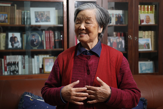 今年已94歲高齡的王江云老人,起身鄭重地從桌邊柜上取出助聽器,塞進兩耳,并反復調整、檢查,方才安心坐定。