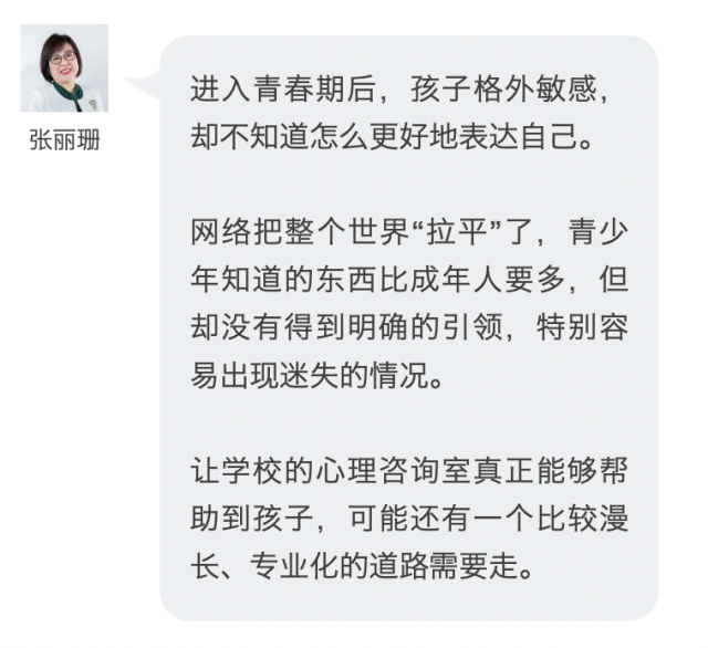 天津耀華中學(xué)心理老師張麗珊,堅(jiān)守在中學(xué)心理健康教育一線30年,在總結(jié)大量心理輔導(dǎo)案例的基礎(chǔ)上,分享了自己對青少年心理健康問題的看法。