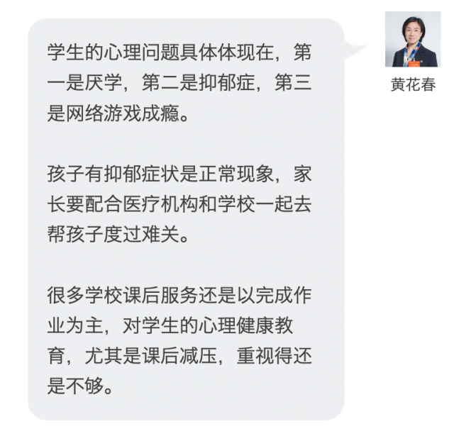 根據(jù)近些年的調(diào)研經(jīng)歷和一線觀察,黃花春代表發(fā)現(xiàn),目前一些鄉(xiāng)村學(xué)校,在心理健康課程設(shè)置上相對不完善,師資力量短缺。