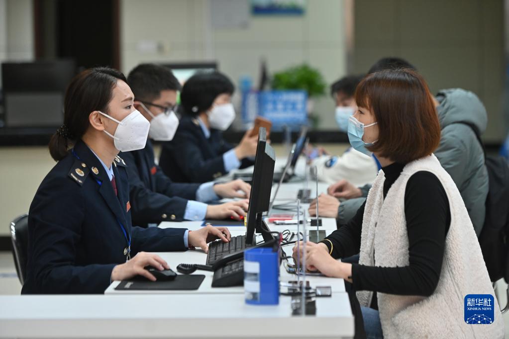 在福州市閩清縣辦稅服務大廳,工作人員向企業(yè)工作人員介紹稅惠政策(2023年2月13日攝)。新華社記者 周義 攝