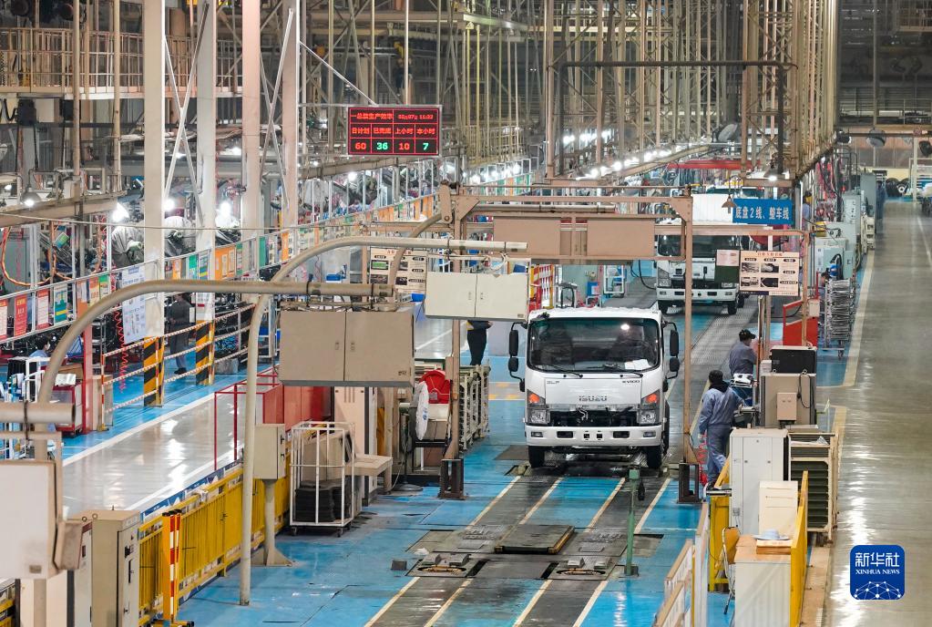 這是慶鈴汽車(集團)有限公司繁忙的商用車整車生產(chǎn)線(2023年2月7日攝)。新華社記者 劉潺 攝