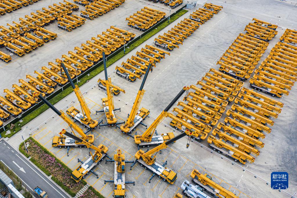 這是2022年5月9日拍攝的江蘇徐工集團重型機械有限公司的產品調試場(無人機照片)。新華社發(fā)