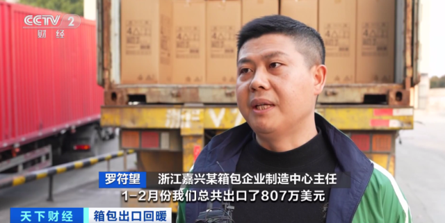 浙江嘉興某箱包企業(yè)制造中心主任 羅符望:1—2月份,我們總共出口了807萬美元,同比增長了67%左右。目前訂單也比較飽和,每天出集裝箱在20個左右,高峰期最多可以出到70個集裝箱。
