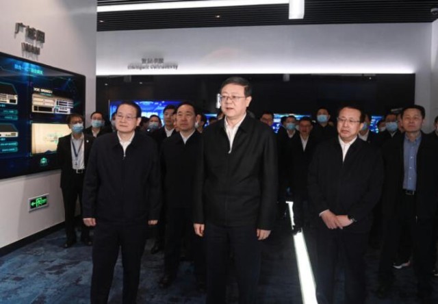 3月18日,上海市黨政代表團(tuán)在杭州考察新華三集團(tuán)。 圖片來(lái)源:浙江在線(xiàn)
