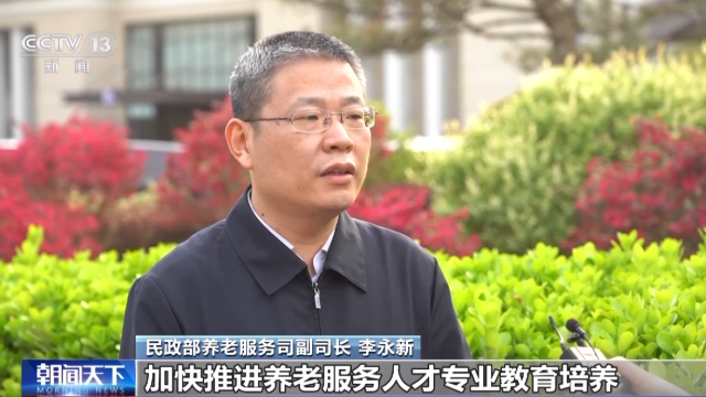 民政部養(yǎng)老服務司副司長 李永新:我們將會同教育、人力資源社會保障等部門,加快推進養(yǎng)老服務人才專業(yè)教育培養(yǎng),支持職業(yè)院校和高等院校緊密結合行業(yè)發(fā)展需求,開設養(yǎng)老服務相關專業(yè)。特別是要鼓勵養(yǎng)老服務機構與院校合作設立實習實訓基地、培養(yǎng)培訓基地,提高“訂單式”培養(yǎng)質量。