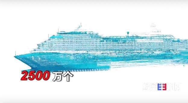 作為目前全球最復(fù)雜的單體機電產(chǎn)品,這艘大型郵輪的零部件數(shù)量多達2500萬個,相當于大飛機C919的5倍,復(fù)興號高鐵的13倍,線纜超過4300公里,約等于上海到拉薩的距離。