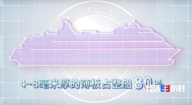 在郵輪建造過程中,不僅線纜布置復(fù)雜,重量也是個極為敏感的因素。首艘國產(chǎn)郵輪船身自重約6.5萬噸,自重每增加1噸,意味著登船物資或人數(shù)就要減少,為了從源頭控制重量,它大量使用了4毫米到8毫米的薄形鋼板。