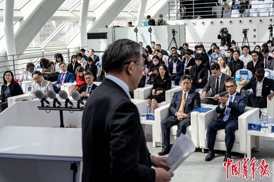 “國(guó)際青年說(shuō)”圓桌對(duì)話環(huán)節(jié),年輕代表們圍繞“青年如何做好溝通中外友好的使者”發(fā)表演講。中青報(bào)·中青網(wǎng)記者 李雋輝/攝